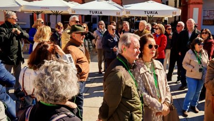 Unas 60 personas, la mayoría mujeres y, a la vez, asociadas a Arte, Arqueología e Historia, nos dimos cita en la plaza de Orive la mañana del sábado 21 de febrero con un espléndido y soleado día.
